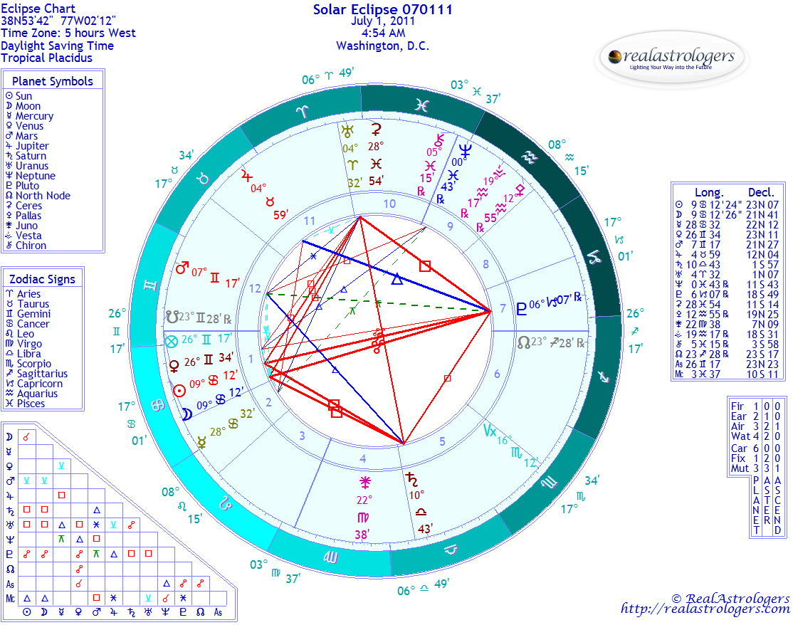 At 9 degrees Cancer, the New Moon solar eclipse on July 1 is the last of the Capricorn-Cancer eclipse series and represents a wrap-up or resolution of a difficult situation that began in mid-2009. You may have another couple of weeks of “cleanup” to do – until the Full Moon on July 15. But overall, the challenge you’ve faced for the past two years will fade away in the rearview mirror, and not a moment too soon! Everyone is exhausted and ready for a break.