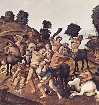 Centauromachy by Piero_di_Cosimo c 1500 Detail ← Previous Detail from Battle of Centaurs and Lapiths, by Piero di Cosimo, c. 1500.