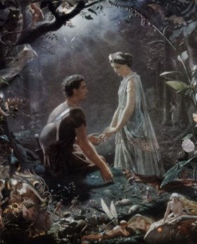 Hermia and Lysander, by Julius Simmons, 1870. Hermia and Lysander are lovers in Shakespeare’s A Midsummer Night’s Dream, from which we get the famous line, “The course of true love never did run smooth.”