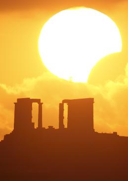 Annular eclipse Jan. 2010, by Elias Chasiotis ← Previous Next → Temple of Poseidon at Cape Sounion, Greece, silhouetted against the annular eclipse on January 14, 2010. Image by Elias Chasiotis.