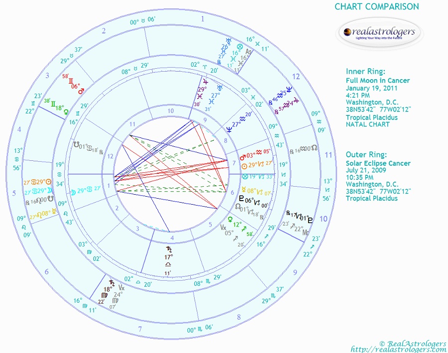 Full Moon in Cancer 011911 biwheel with 2009 eclipse