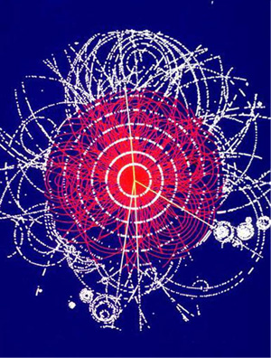 Higgs-Boson Illustrated ← Previous Next → Illustration of a decaying Higgs-Boson. Can you spot the muons? Photo courtesy CERN.