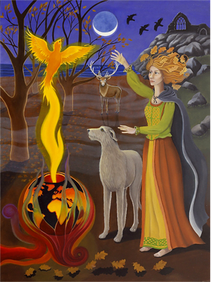 Morrigan by Karen MacKenzie med ← Previous Next → The Irish Goddess Morrigan as Scorpio. © Karen MacKenzie, 2013. Details below.