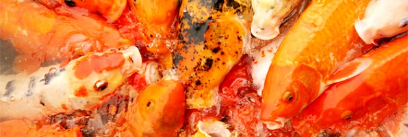 carps in the pond fighting for food