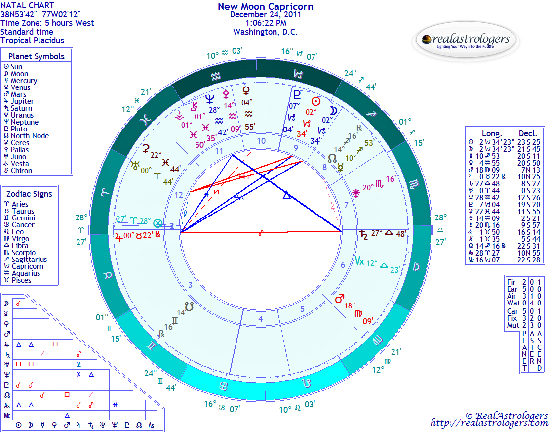 Shortly after entering Capricorn, the Sun trines Jupiter and squares Uranus, both on Thursday. Both aspects are activated by the New Moon, so I’ll turn my attention toward this significant event.